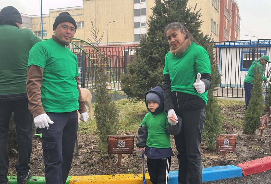 Алматыда «Таза Қазақстан» бастамасы аясында балалар ата-аналарымен бірге атаулы ағаштар екті