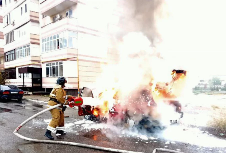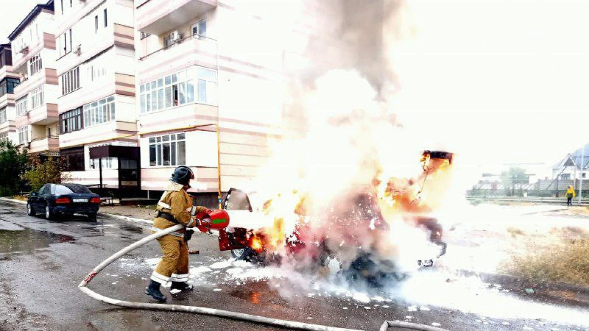 Бүгін «112» пультіне “Ұлы дала” шағын ауданындағы бес қабатты тұрғын үйдің жанында газбаллонды қондырғы орнатылған жеңіл автокөліктің жанып жатқаны туралы хабар түсті.